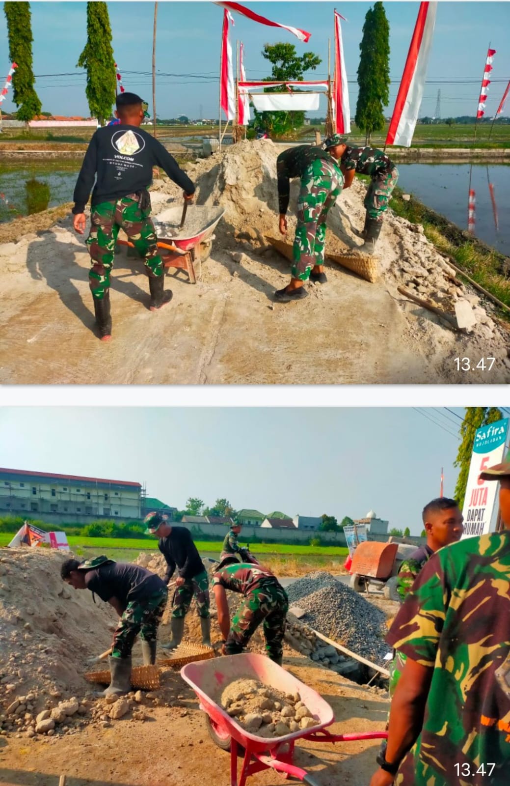 “Anggota Satgas TMMD bersama warga masyarakat dari berbagai elemen masyarakat desa Wirun tetap solid, masih terus melanjutkan pembangunan di berbagai sasaran fisik, sisa waktu yang ada kita maksimalkan untuk menyelesaikan pekerjaan di semua lokasi pekerjaan”, ucap Palaks TMMD Kapten Inf Kurniawan.