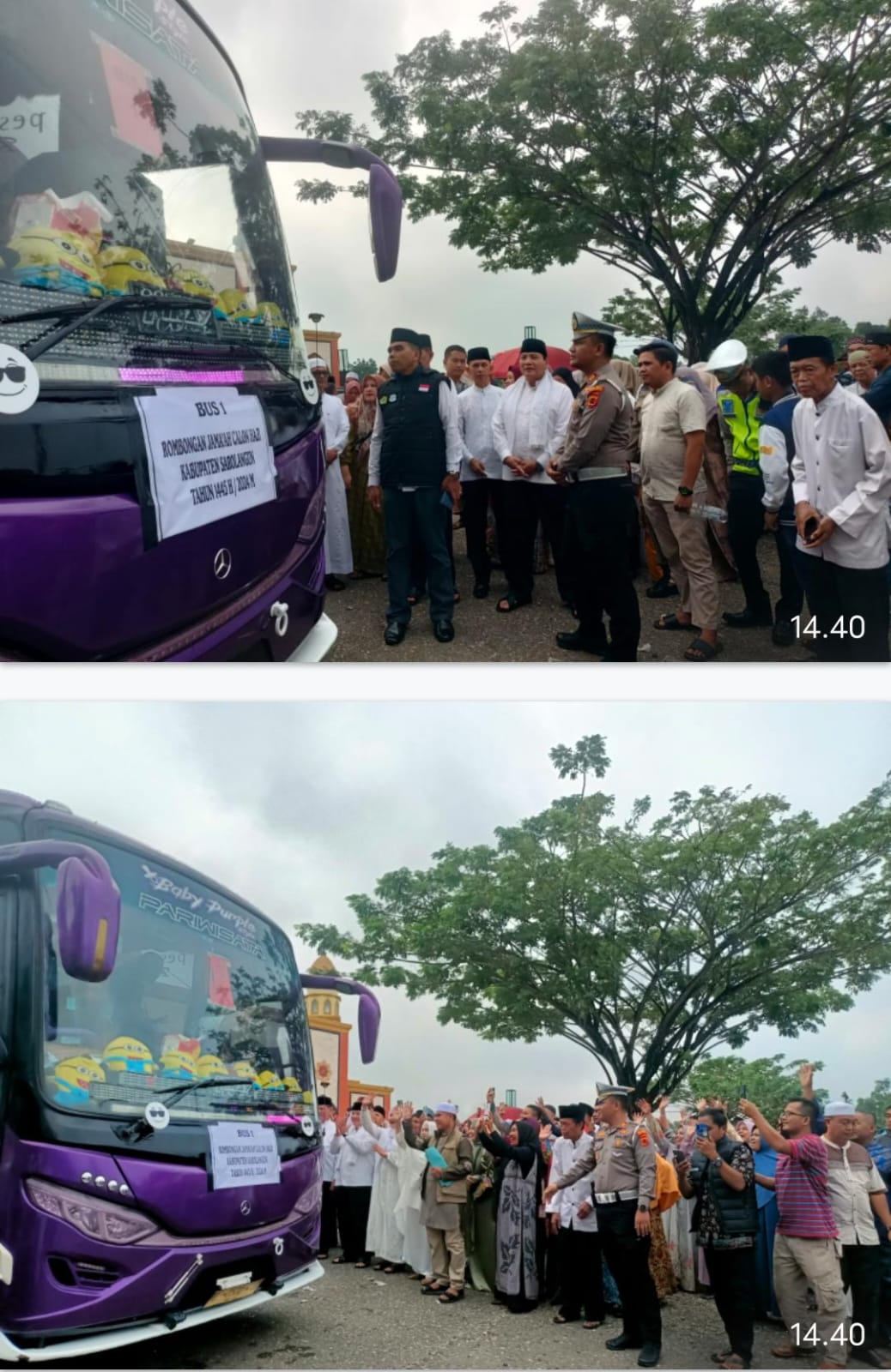 Disampaikan kasi saat pelepasan Hadir Pj Bupati Sarolangun, Dr. Ir Bachril Bakrie M.App, Sc Beserta ketua PKK Kabupaten Sarolangun serta di dampingi pejabat pemerintahan dan Unsur Forkopimda SE kabupaten Sarolangun. Sedangkan Kapolres Sarolangun di wakili Kasat lantas Polres Sarolangun AKP Rio Renaldy S, S.T.K.,S.IK beserta Perwira Staff dan keluarga Calon jamaah haji.
