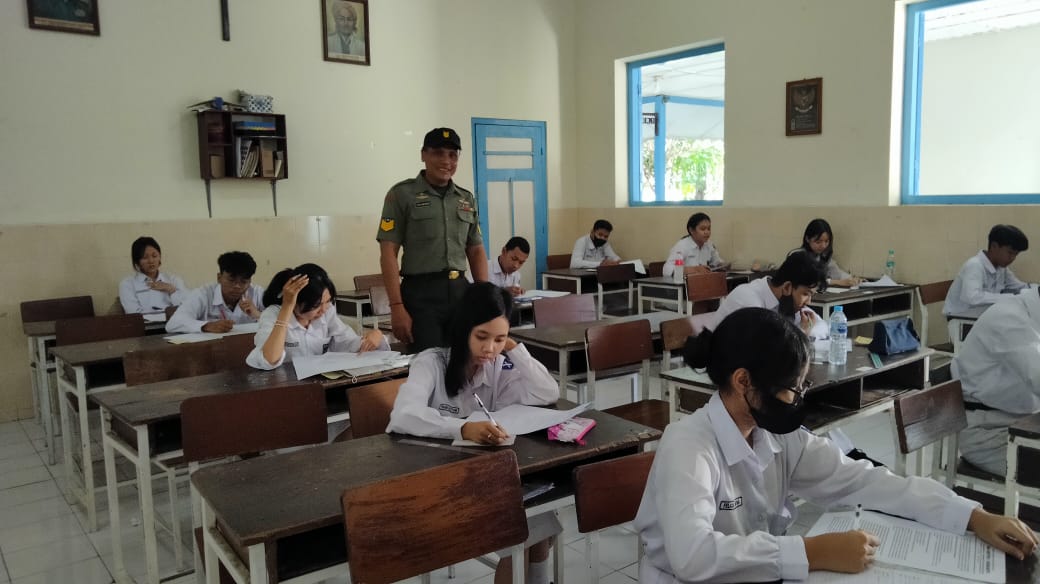 Di harapkan dengan hadir nya anggota koramil 03 / Serengan di SMA Kristen 1 Surakarta dapat menggugah semangat para siswa siswi mengerjakan ujian PST ( Penilain Sumatif Akhir Tahun ), Tegas Sersan Mayor Yudhi