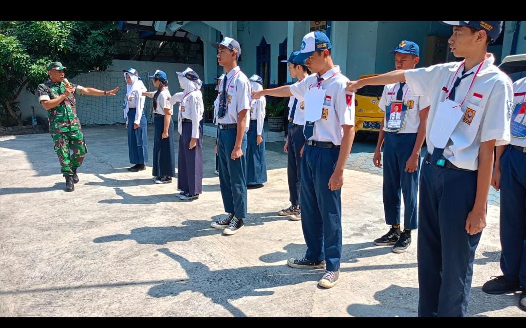 Babinsa Kelurahan Gilingan Koramil 02/Banjarsari Kodim 0735/Surakarta Serka Fajar dan Serda Sandi memberikan pelatihan dasar Peraturan Baris Berbaris (PBB) kepada Siswa-siswi Pramuka SMAN 2 di Jl. Monginsidi No 40 Kelurahan Gilingan Kecamatan Banjarsari, Minggu (04/08/2024).