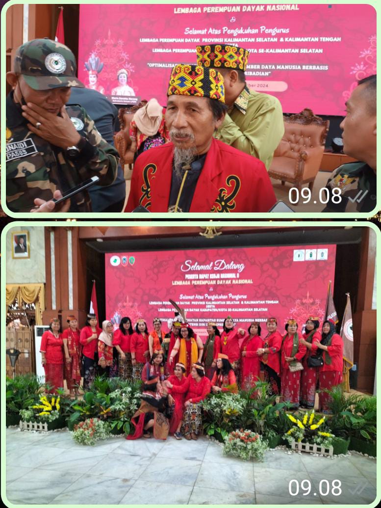 Ketua Umum Dewan Adat Dayak (DAD) Kalsel, H. Abdul Kadir Hadir pada Rapat Kerja Nasional Lembaga Perempuan Dayak Nasional (LPDN) hari ini menyampaikan apresiasi yang penuh semangat dan inspirasi bagi perempuan Dayak di Kalimantan Selatan. Di Gedung Mahligai Pancasila, Jln.Jend.Sudirman, Banjarmasin. Sabtu, (30/11/2024).