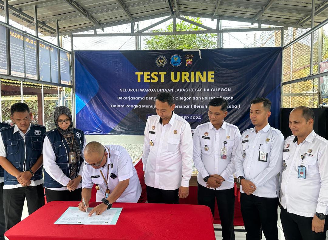 CILEGON – Global investigasi News.com – Sebagai upaya memerangi penyalahgunaan narkoba di lingkungan pemasyarakatan, Lembaga Pemasyarakatan (Lapas) Kelas IIA Cilegon melaksanakan tes urine massal bagi seluruh warga binaan pada Rabu (18/12). Total sebanyak 1.790 warga binaan mengikuti kegiatan ini yang merupakan hasil kerja sama antara Lapas Cilegon, Badan Narkotika Nasional Kota (BNNK) Cilegon, dan Polres Cilegon. Kegiatan ini dilakukan sebagai langkah konkret menuju Lapas Bersinar (Bersih dari Narkoba).
