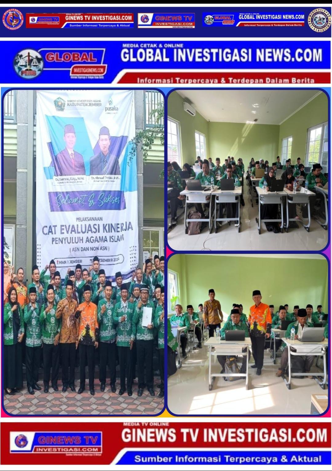 Jember – Globalinvestigasinews. Com ~ Kepala Kantor Kementerian Agama (Kemenag) Kabupaten Jember, Dr. Santoso, S.Ag., M.Pd., didampingi oleh Plt. Kepala Seksi Bimas Islam, Dr. Ahmad Tholabi, M.HI., melakukan monitoring pelaksanaan Computer Assisted Test (CAT) untuk evaluasi kinerja Penyuluh Agama Islam, Kamis (19/12/2024).
