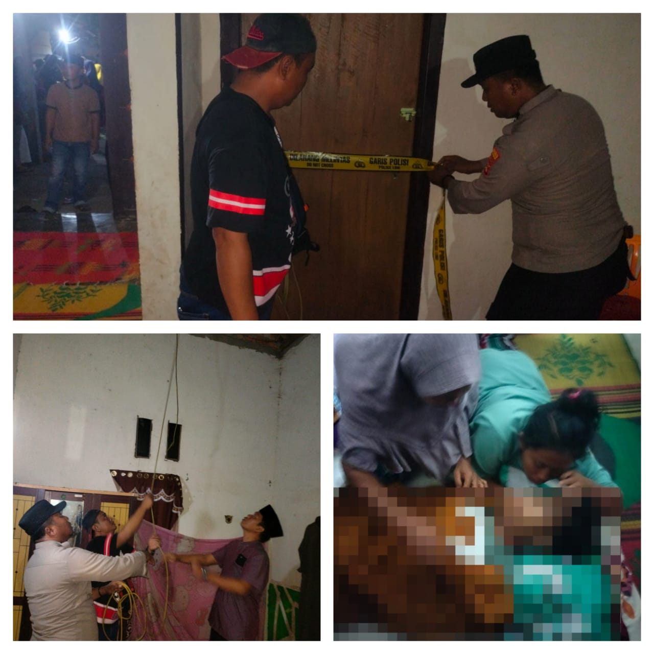 Kemudian kakak korban memanggil saksi untuk mendobrak pintu, setelah pintu didobrak didapati korban sudah dalam keadaan tergantung dengan tali tambang jemuran sepanjang sekitar 10 meter yang dikaitkan di kayu atas kamar.