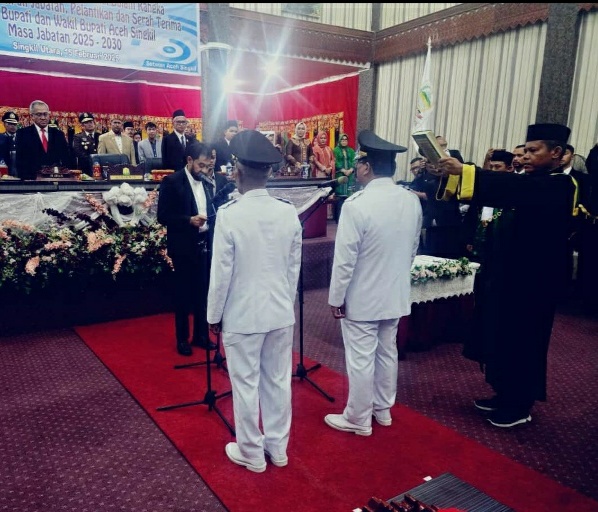 Gubernur Aceh, Muzakir Manaf secara resmi melantik dan mengambil sumpah Bupati dan Wakil Bupati Aceh Singkil masa bakti 2025 – 2030.