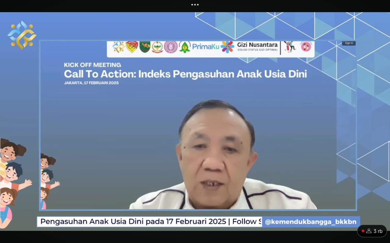 Demikian disampaikan Sekretaris Kementerian Kependudukan dan Pembangunan Keluarga/Sekretaris Utama Badan Kependudukan dan Keluarga Berencana nasional (BKKBN), Budi Setiyono, dalam kegiatan Call To Action: Indeks Pengasuhan Anak Usia Dini yang berlangsung melalui fasilitas zoom meeting, Senin (17/2/2025).