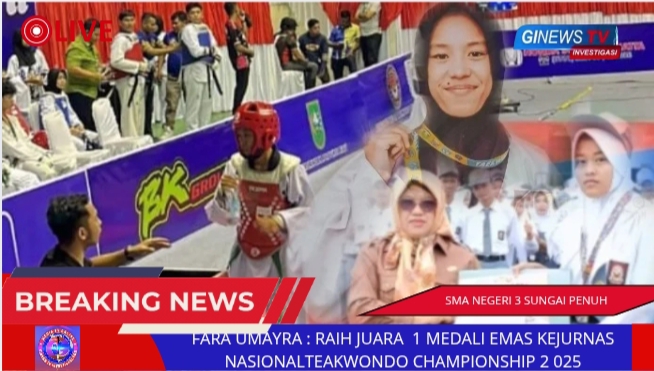 Sungai penuh Ginewstv investigasi com : Fara Umayra merupakan Siswi SMAN 3 Sungai Penuh provinsi Jambi yang berhasil menorehkan prestasi dalam kejurnas National Taekwondo Championship 2025.