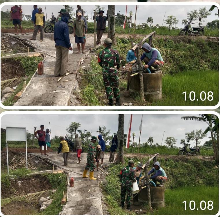 Boyolali. Air menjadi kebutuhan yang mendasar dalam proses pengerjaan pengecoran TNI Manunggal Membangun Desa (TMMD) Reg Ke 123 tahun 2025 Kodim 0724/Boyolali yang bertempat di Desa Kalinanas Kecamatan Wonosamudro Kabupaten Boyolali, Kendala sumber air dekat lokasi sasaran sudah berkurang, namun tak menyurutkan semangat personel satgas TMMD bersama warga. Jumat ( 21/02/25)