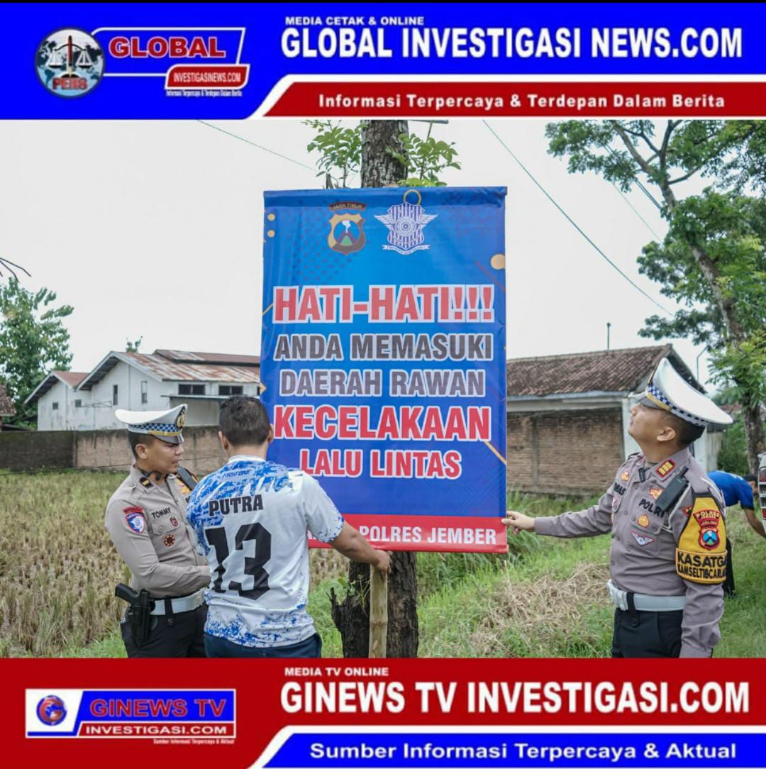 Tekan Angka Laka Lantas, Sat Lantas Polres Jember Supervisi Jalur Black Spot dan Pasang Banner Himbauan