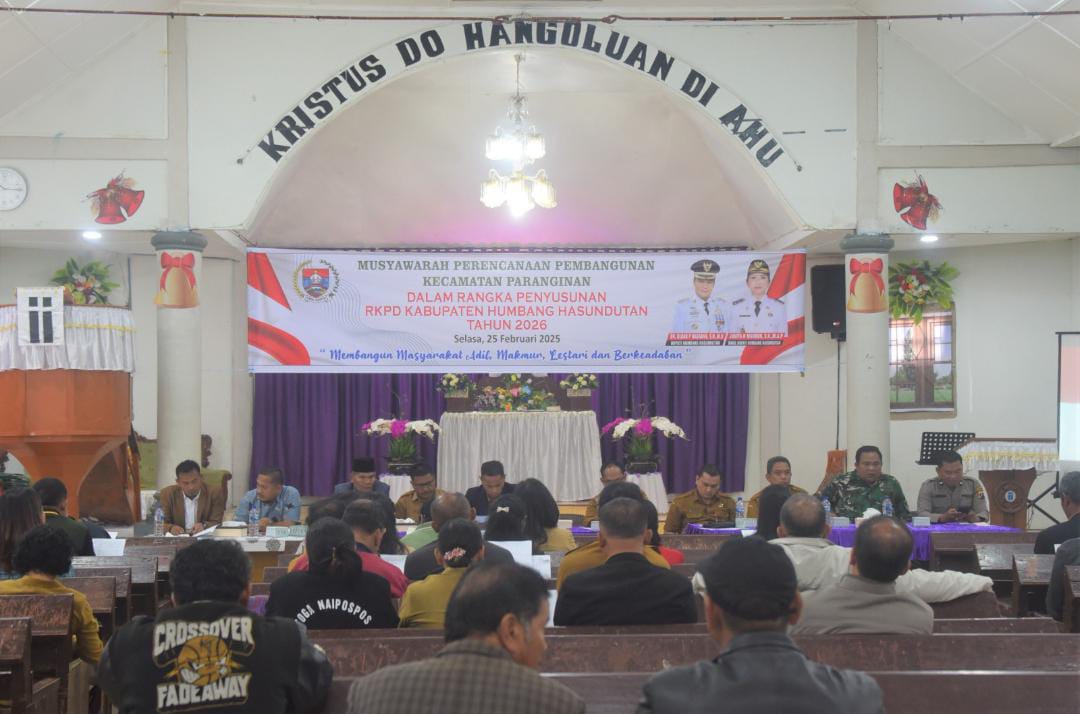 Musrenbang (Musyawarah Perencanaan Pembangunan) di Kecamatan Paranginan Kabupaten Humbahas dilaksanakan bertempat di HKI Paranginan, Selasa 25 Februari 2025.