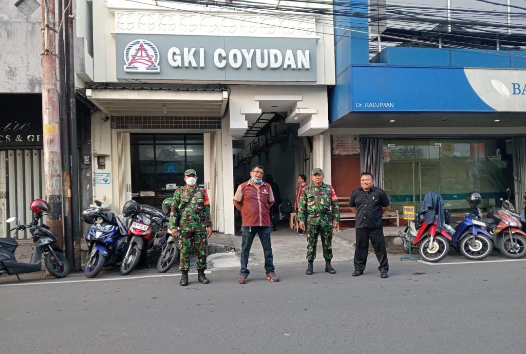 Babinsa Jayengan Serka Rohmad menambahkan bahwa kegiatan pengamanan gereja seperti ini sudah menjadi bagian dari tugas rutin pembinaan teritorial yang dilaksanakan Babinsa Koramil 03/Serengan dan hal ini bertujuan untuk menjaga situasi di wilayah agar tetap kondusif, tugas pengamanan di sejumlah tempat ibadah umat Nasrani yang berada di wilayah binaan untuk mengantisipasi gangguan Kamtibmas selama beribadah Minggu pagi di GKI Coyudan