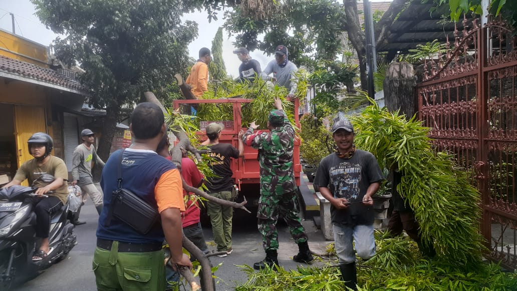 Surakarta – Babinsa Kelurahan Gandekan Koramil 04/Jebres Kodim 0735/Surakarta Sertu Teguh K bersama dengan Tim Sapu Bersih Lingkungan (Saberling) melaksanakan kegiatan Kerja Bakti bersih bersih lingkungan bertempat di Sepanjang Jl.Sungai Batanghari Kelurahan Gandekan Kecamatan Jebres, Sabtu (08/03/2025).