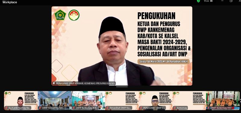 ”Semoga semua pengurus DWP dapat mengemban amanah dengan sebaik-baiknya dan dengan penuh tanggung jawab, sehingga setiap visi dan misi dapat dicapai bersama-sama,” harapnya, Selasa (04/03/2025) dalam sambutannya melalui Zoom Meeting pada Pengukuhan Ketua dan Pengurus DWP Kantor Kemenag Kabupaten dan Kota se Kalimantan Selatan Masa Bakti 2024-2029 Pengenalan Organisasi & Sosialisasi AD/ ART DWP.