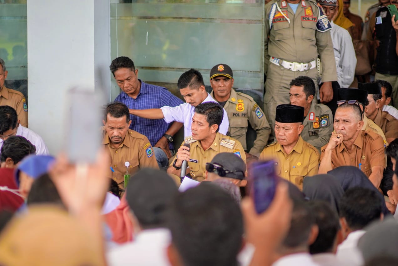 Mendengar aspirasi yang disampaikan Forum Solidaritas CASN dan PPPK Bupati Bambang Firdaus dengan penuh kelembutan sebagai seorang bapak bagi anak-abaknya mengatakan dirinya berada di pihak para CASN dan PPPK yang hadir menemuinya.