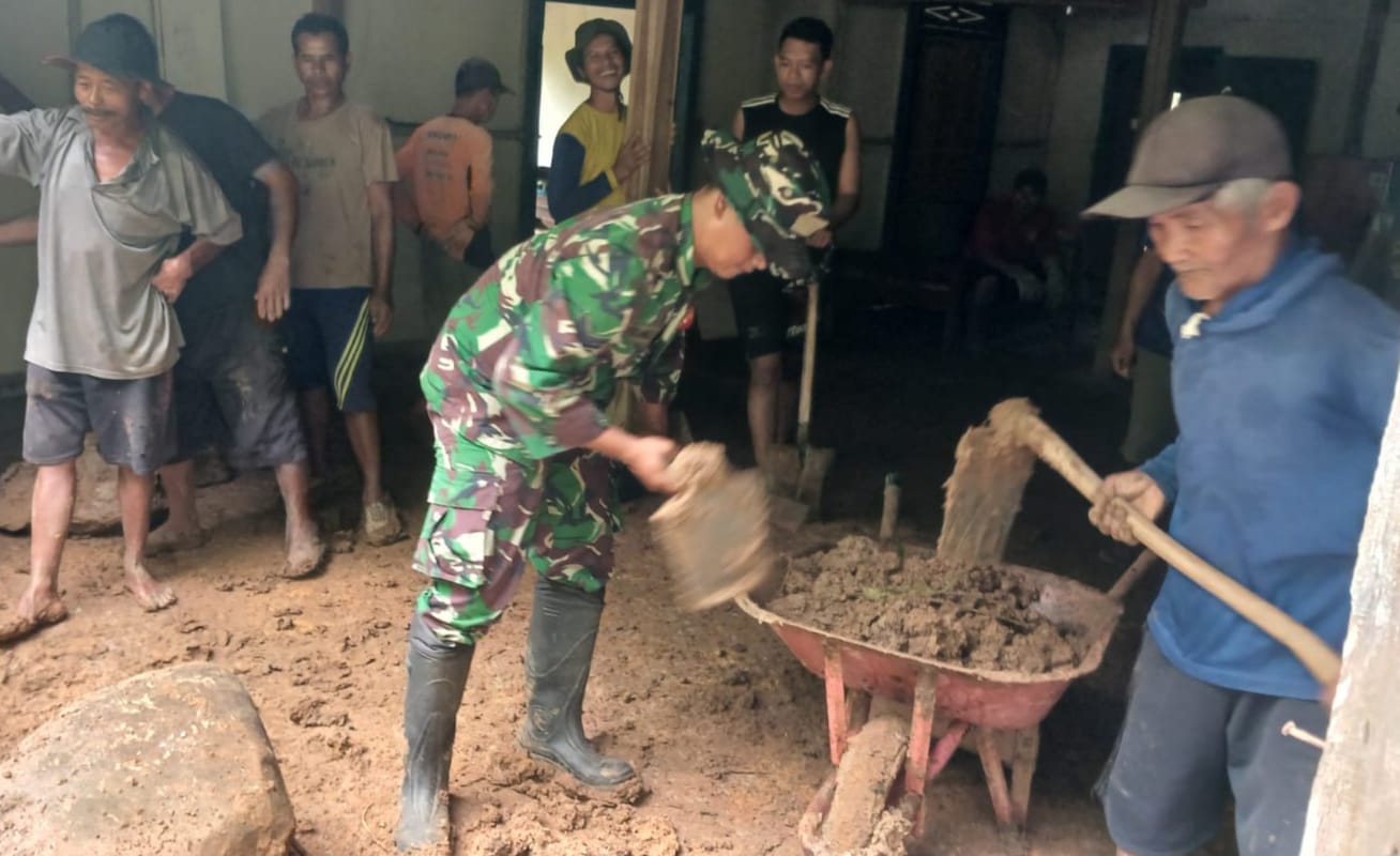 Prajurit TNI Diterjunkan Bantu Bersihkan Rumah Warga yang Tertimbun Longsor