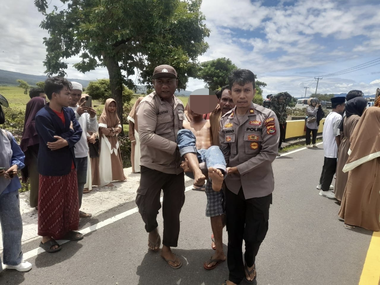 Mendapat laporan dari warga, Kapolsek Pekat Iptu Rahmadun Siswadi. S.H, beserta anggota langsung bergerak cepat menuju lokasi kejadian. Dengan penuh kepedulian, mereka mengevakuasi korban dan membawanya ke Puskesmas Nangakara. Sementara itu, kendaraan korban diamankan untuk kepentingan penyelidikan lebih lanjut.