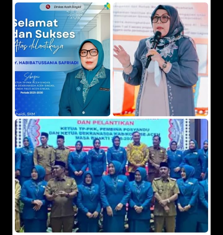Ny. Habibatussania, istri Buapati Aceh Singkil, secara resmi dikukuhkan sebagai Ketua Tim Penggerak Program Kesejahteraan Keluarga (TP PKK), Ketua Dewan Kerajinan Nasional Daerah (Dekranasda), sekaligus sebagai Pembina Bunda Paud Kabupaten Aceh Singkil Masa Bakti 2025-2030.