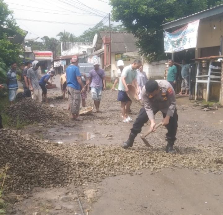 Polri Untuk Masyarakat, Polsek Cikedal Swadaya Perbaiki Jalan Bersama Masyarakat