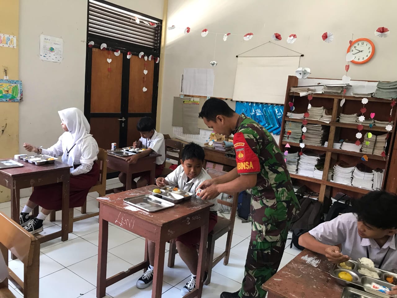 “TNI Siap Mendukung Penuh Program Pemerintah” Babinsa Jagalan Bantu Pendistribusian Makanan Bergizi