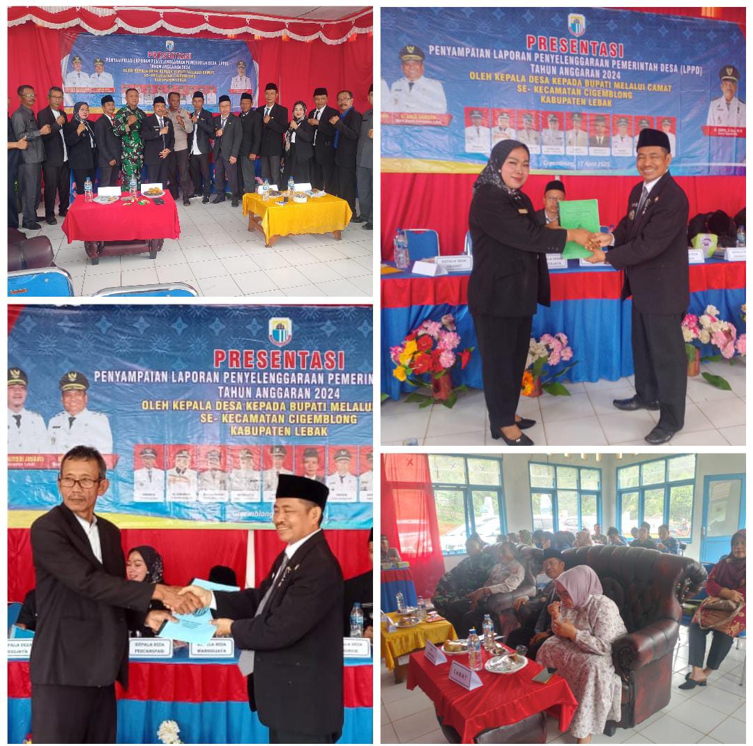 Sebanyak 9 Desa di Kecamatan Cigemblong Kabupaten Lebak Banten provinsi Banten menyampaikan laporan presentasi anggaran tahun 2024. Kamis 17 mei 2025 bertempat di aula kecamatan Cigemblong.