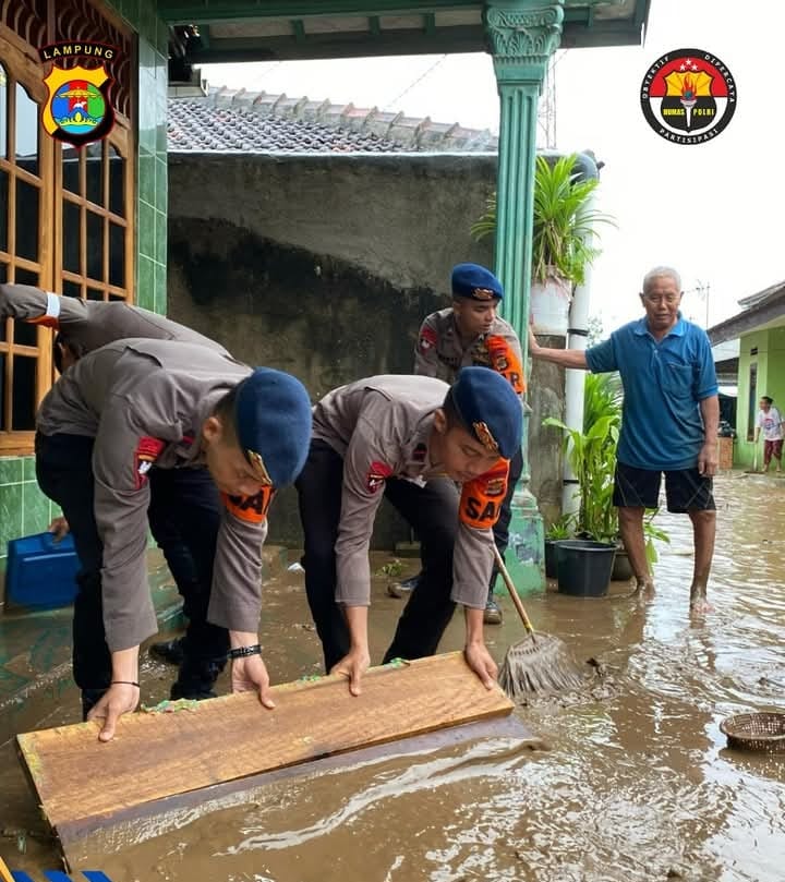 Dipimpin oleh Iptu Rano, sebanyak 2 SST personel Brimob diterjunkan ke lokasi untuk memberikan bantuan langsung. Dansat Brimob Polda Lampung KBP Yustanto Mujiharso melalui Kabag Ops Kompol Moch Sonep menyampaikan bahwa kehadiran Brimob bukan hanya untuk evakuasi, tapi juga membantu warga membersihkan rumah dan lingkungan pasca-banjir.