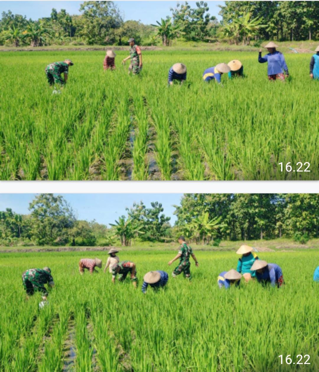 Sragen, Rabu (23/04/2025) Serka Sugeng Riyadi Babinsa Desa Pelemgadung bersama dua orang anggota Koramil 02/Karangmalang Kodim 0725/Sragen melaksanakan giat Bin WanWil Tah Wil pendampingan petani yang sedang melaksanakan giat pembersihan hama rumput pengganggu pada tanaman padi di sawah milik Bpk. Slamet kelompok Tani Berkah Dk.Tewel Ds.Pelemgadung Kec. Karangmalang.