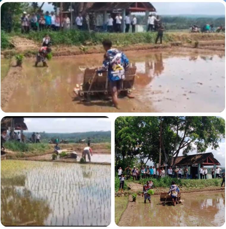 Tanam serentak ini disaksikan langsung oleh Bapak Presiden Prabowo melalui virtual zoom tersebut ditandai dengan menanam padi menggunakan mesin tanam padi.