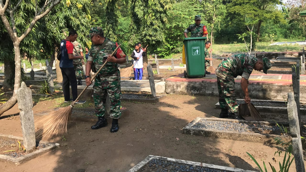 Sambut HUT Ke-59 Korem 074/Warastratama, Koramil 04/Jebres Kerja Bakti di TMP Kusuma Bakti Juruq