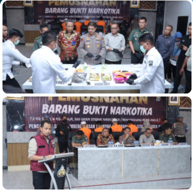 - Barang bukti dari tersangka R dan tersangka F yang disita pad bulan februari 2025 berupa narkotika jenis sabu seberat 174.73 gram dan 4 ( empat) paket besar berisi narkotika jenis sabu sabu (methamfetamina) dengan berat awal 4,005 kilo gram selanjutnya disisihkan untuk kepentingan pemeriksaan labfor dan untuk kepentingan pembuktian di pengadilan seberat 126 gram sehingga total yang akan dimusnahkan seberat 3,874 kilo gram.