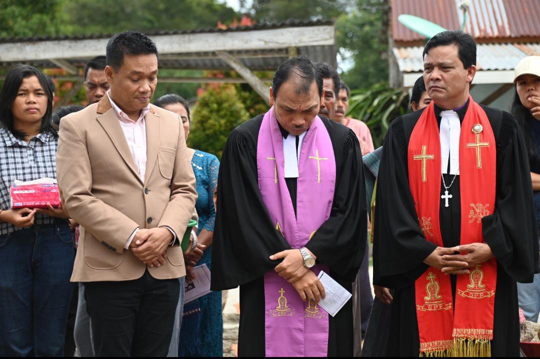 Hari Sabtu 10 Mei 2025, Bupati Humbahas Dr Oloan P Nababan SH MH bersama Bishop GPP Pdt Makmur Simaremare S.Th MM, Sekjen GPP Pdt Brani Jaya Hutauruk M.Th dan lainnya termasuk panitia meletakkan batu penjuru pembangunan gedung GPP (Gereja Protestan Persekutuan) Estomihi Pearung, Kecamatan Paranginan.