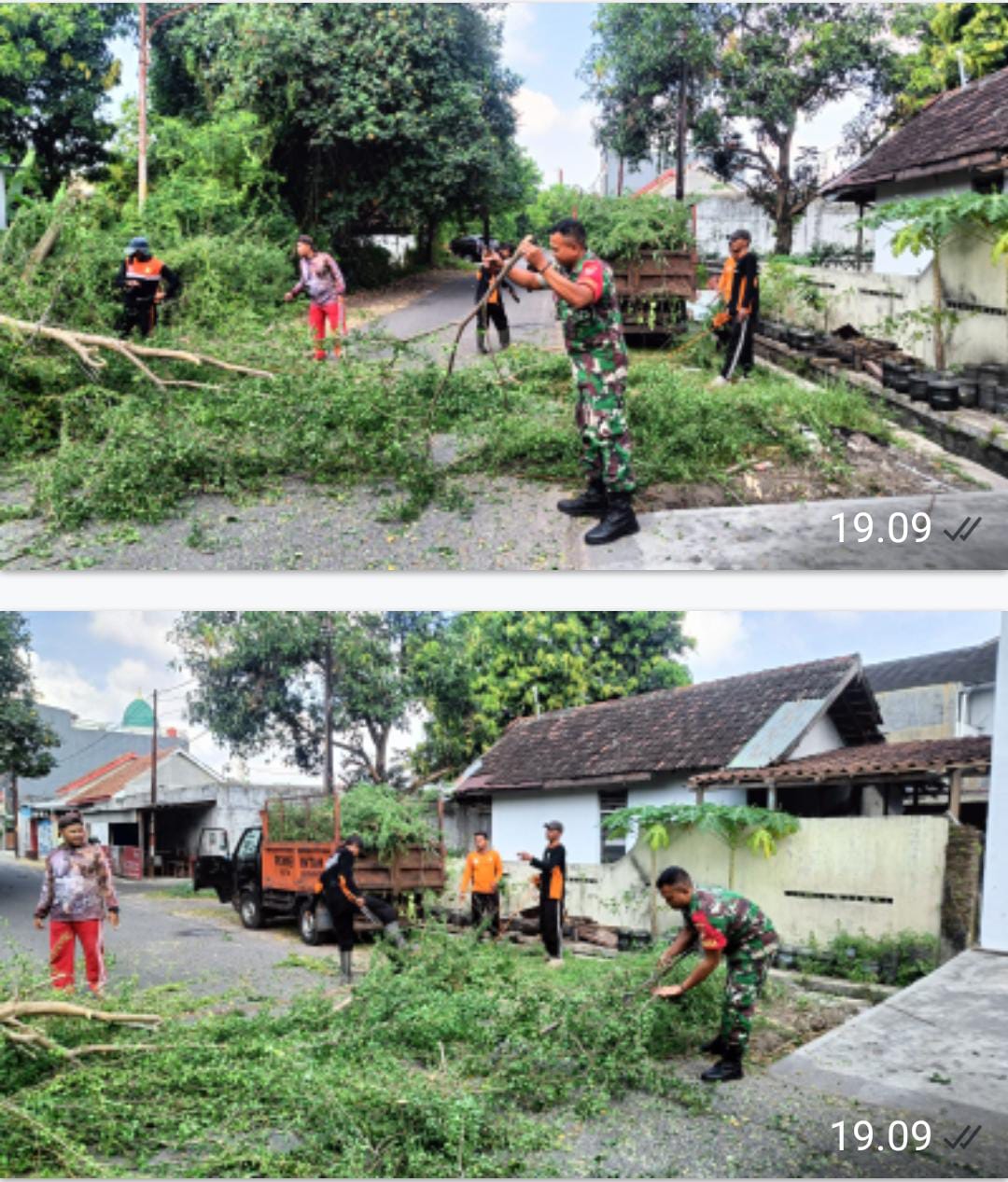 Kondisi cuaca yang tidak menentu dan sering terjadi hujan disertai angin kencang menimbulkan banyak kerawanan, terutama pohon tumbang. Mengantisipasi hal tersebut, Babinsa bersama warga bergotong royong menebang pohon-pohon yang sudah tua di pinggir jalan, sebab dikhawatirkan dapat membahayakan pengguna jalan.