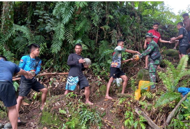 Meski berada di area yang sulit untuk mobilitas bahan baku proses pembangunan lantaran akses jalan menuju lokasi yang sulit, namun semangat prajurit tetap berkobar. Salah satunya dengan menyiapkan batu sungai sebagai salah satu bahan utama pembuatan pondasi rumah.