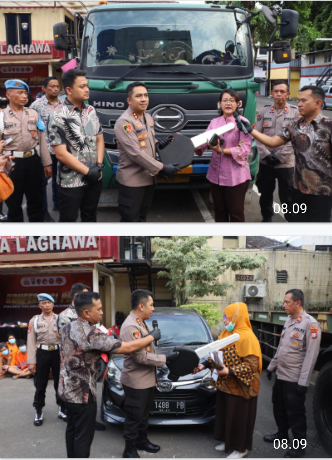 Kendaraan yang dikembalikan meliputi Satu unit truk kontainer, Satu unit mobil dan Satu unit sepeda motor Honda Vario.