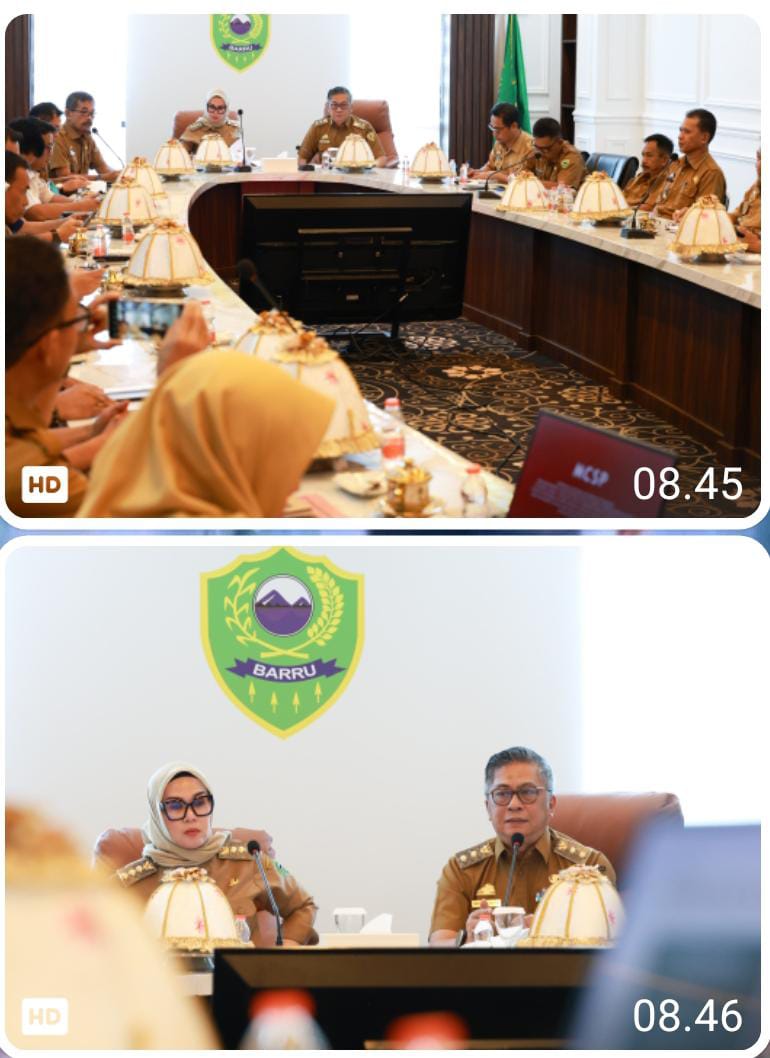 Bupati Barru, Andi Ina Kartika Sari, SH., M.Si.,memimpin langsung Rapat Koordinasi Monitoring, Controlling, Surveillance for Prevention (MCSP) di ruang rapat Kantor Bupati Barru, (19/5/25).