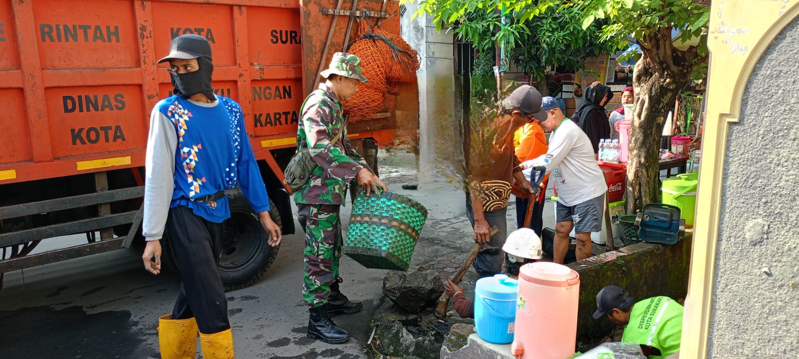 Surakarta – Sebagai wujud kepedulian terhadap kebersihan lingkungan di wilayah binaan serta menumbuhkan kesadaran masyarakat tentang pentingnya kebersihan, Babinsa Kelurahan Gilingan Koramil 02/Banjarsari Kodim 0735/Surakarta Serka Fajar dan Sertu Sandi terjun kelapangan memimpin pelaksanaan kerja bakti bersama dengan warga masyarakat dan elemen masyarakat yang ada diwilayah Kelurahan Gilingan kecamatan Banjarsari, Rabu (21/05/2025).