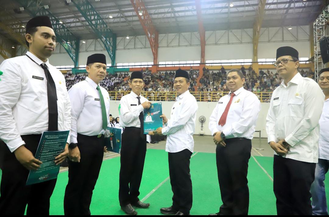 “Pada hari ini saya melakukan pengambilan sumpah bagi 6.929 orang PPPK dengan rincian 2.896 hadir langsung di venue Indoor Si Jalak Harupat dan 4.033 hadir secara daring dari lokasi unit kerja/sekolah masing-masing,” ujar Bupati Dadang Supriatna.