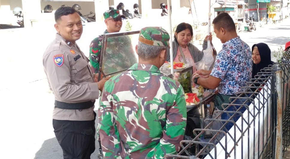 Surakarta, Babinsa Kelurahan Kratonan Koramil 03/Serengan Kodim 0735/Surakarta Serka Aris setyo Utomo dan Koptu Resbiyanto beserta bhabinkamtibmas Aipda Danar memberikan Motifasi kepada pedagang rujak lotis di rt 05/5 Kratonan Serengan Kota Surakarta (24/05/2025)
