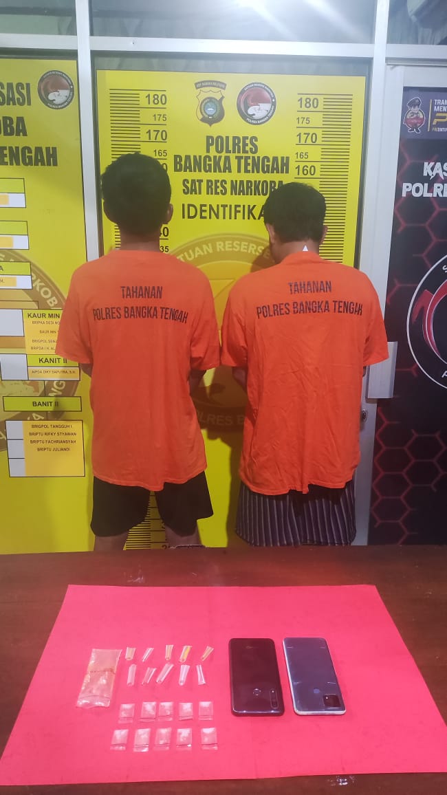 “Kedua pelaku yang diamankan masing-masing berinisial A (23) dan MU (25), keduanya merupakan warga Desa Kurau Barat, Kecamatan Koba. Dari tangan pelaku kami mengamankan sejumlah barang bukti yang menguatkan dugaan keterlibatan mereka dalam tindak pidana narkotika,” terang IPTU Heri.
