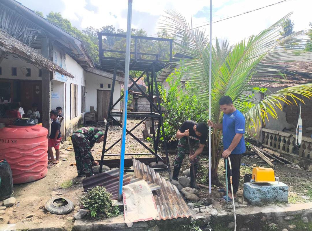 LUWU UTARA ,Global Investigasi News | Personil Satgas TMMD ke-124 Kodim 1403/Palopo terus mengawal salah satu sasaran fisik yakni, pengerjaan sumur bor yang sudah memasuki tahap pemasangan rangka tandon atau penampungan air.