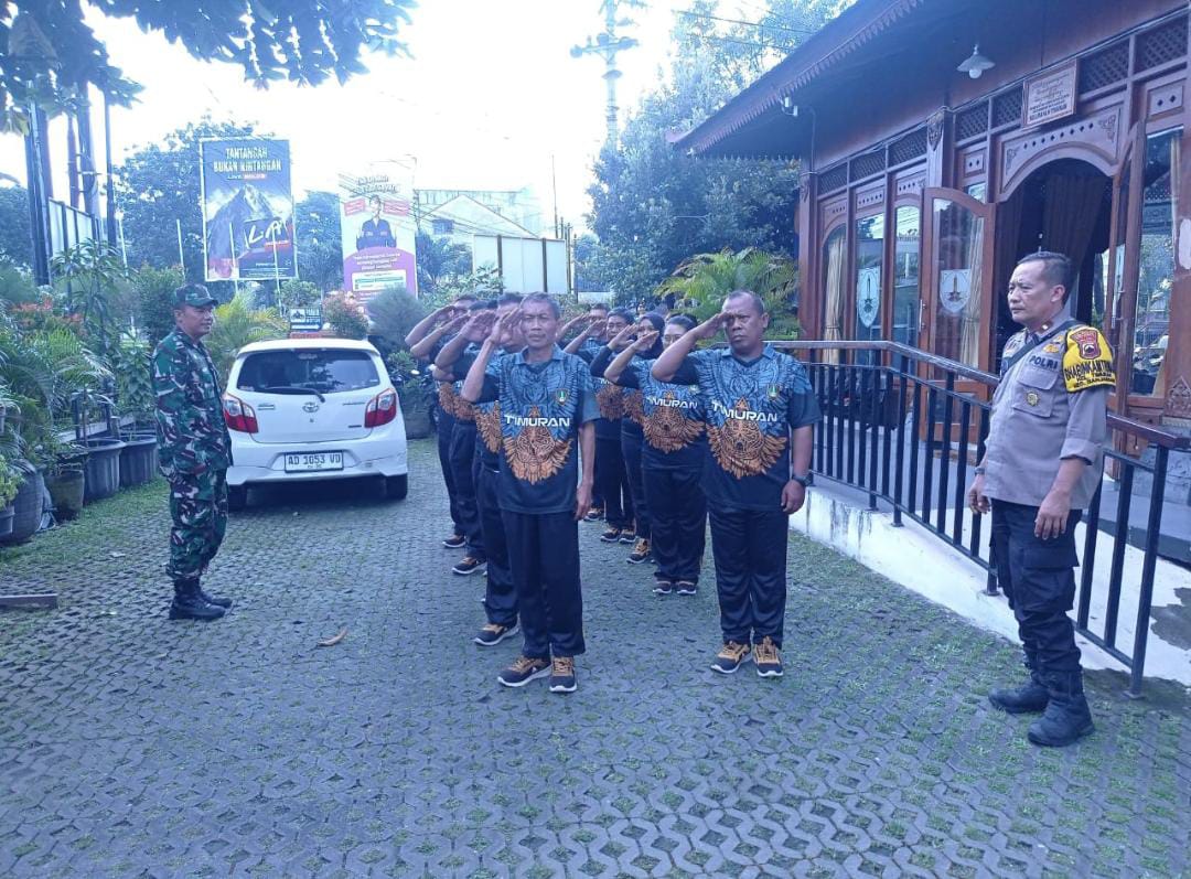 Surakarta – Babinsa Kelurahan Timuran Koramil 02/Banjarsari Kodim 0735/Surakarta Serka Danang M berkolaborasi dengan Bhabinkamtibmas Kelurahan Timuran memberikan pelatihan PBB (Peraturan Baris Berbaris ) kepada Anggota Linmas Timuran di Halaman Kelurahan Timuran jln Ronggo Warsito Kelurahan Timuran , kecamatan Banjarsari, Jum’at (30/05/2025).