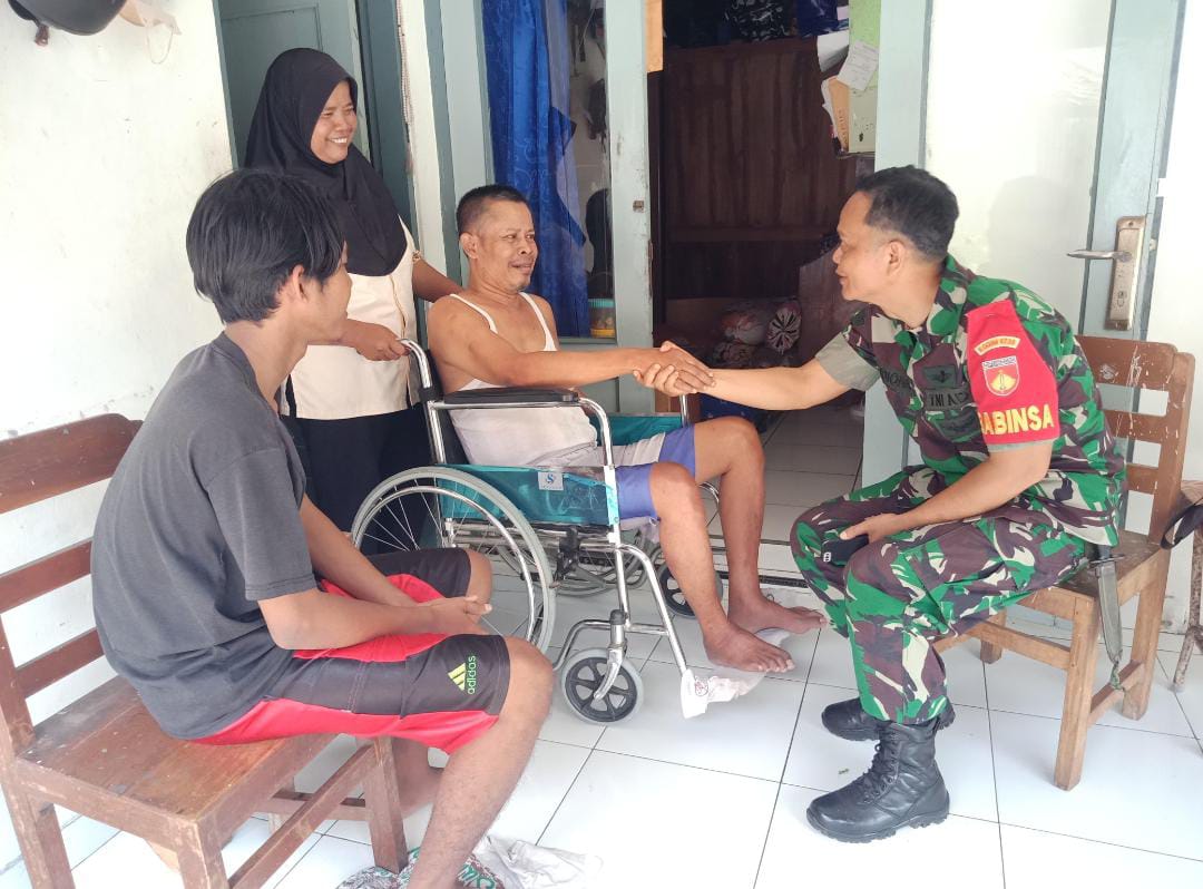 Surakarta – Babinsa Kelurahan Kepatihan Wetan Koramil 04/Jebres Kodim 0735/Surakarta Sertu Budiono menunjukkan kepeduliannya dengan menjenguk warga binaannya yakni Bapak Ilham yang saat ini sedang sakit struck di rumahnya di RT. 02/1 Kel. Kepatihan Wetan Kecamatan Jebres, Sabtu (31/05/2025).