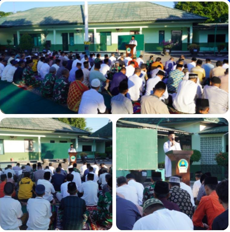 Pada kegiatan Sholat Idul Adha tersebut, bertindak sebagai imam dan khotib Serda Sarbini dan bilal Serma Fauzan