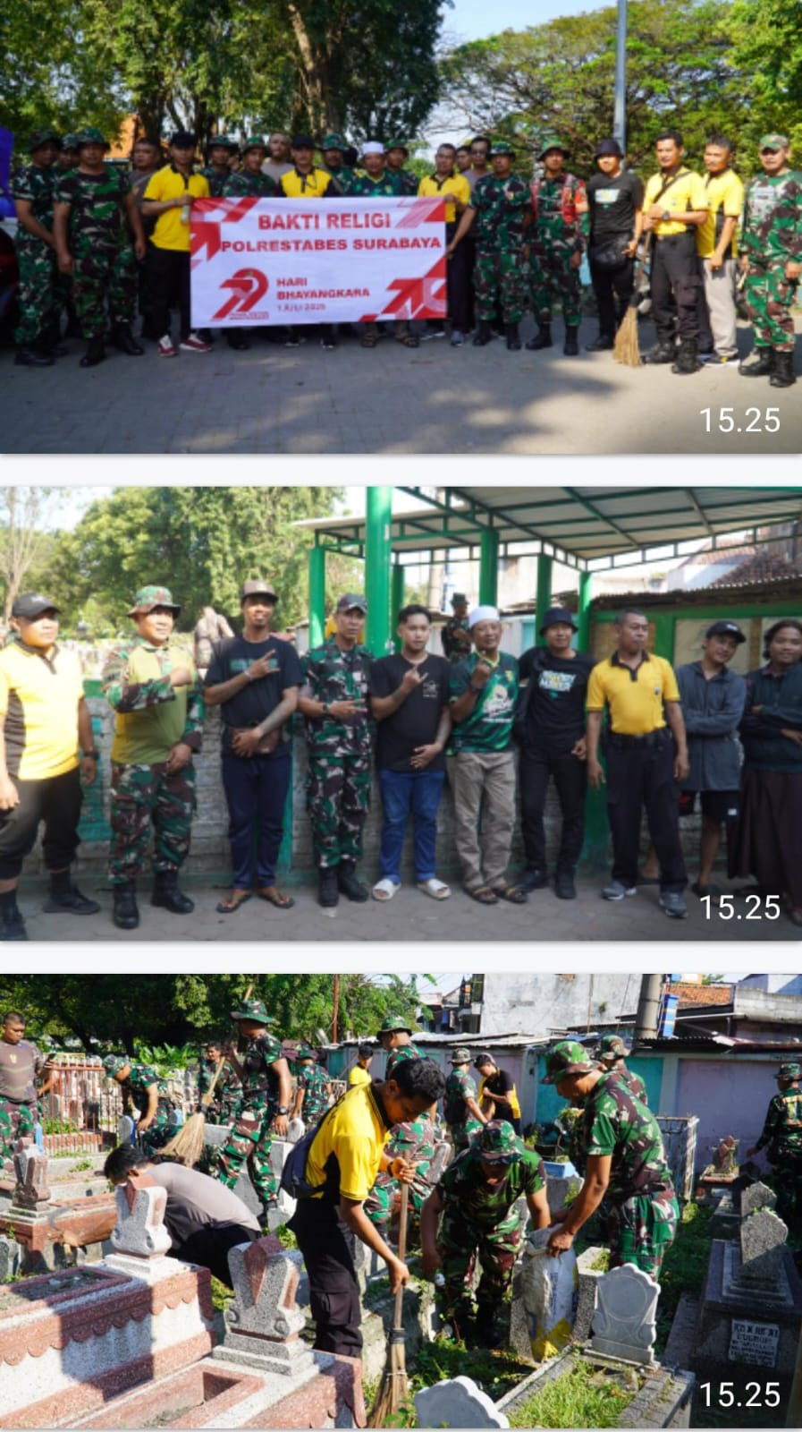 Bakti Religi Polrestabes Surabaya: Bersihkan Makam Pegirikan Bareng TNI dan Bonek Sambut Hari Bhayangkara