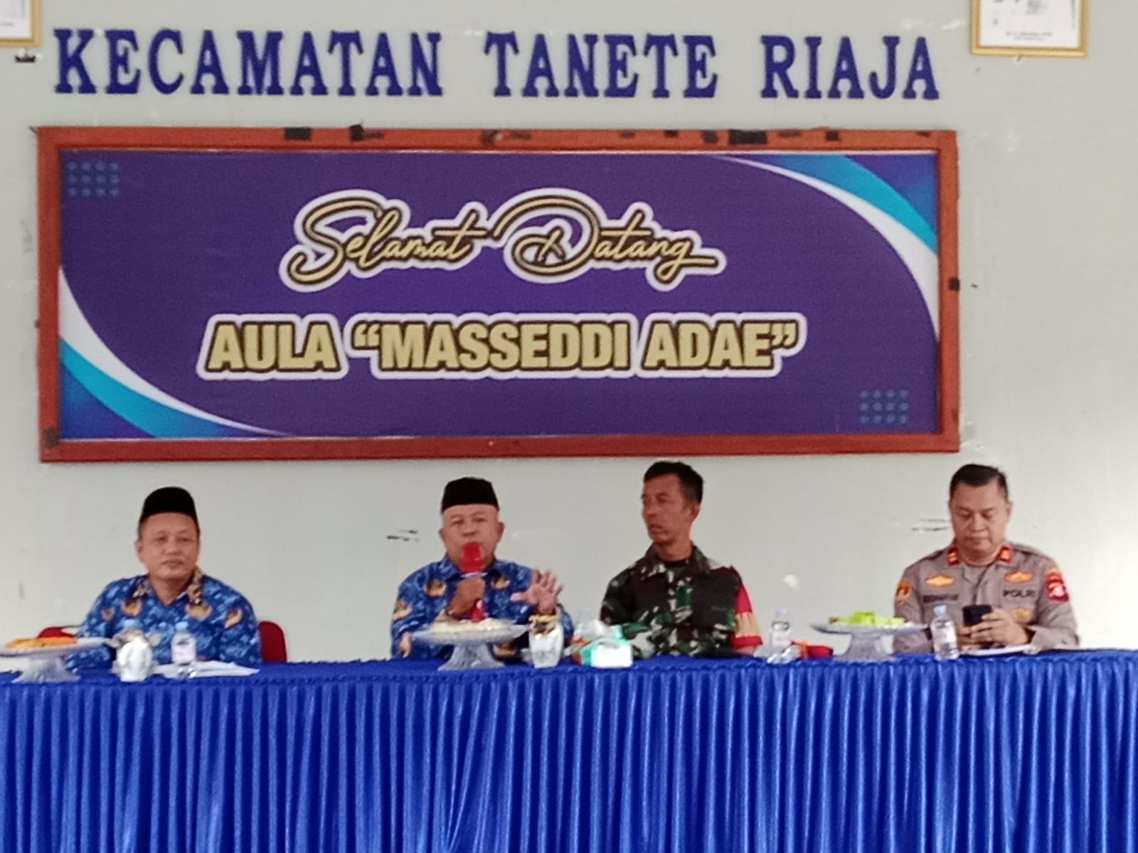 Camat Tanete Riaja Dr. Mukti, S.H., M.H, bersama Sekcam Tanete Riaja Aristo Sidiq, S.H,M.H.,menyampaikan pentingnya duduk bersama pihak terkait, pengurus panitia dan masyarakat.