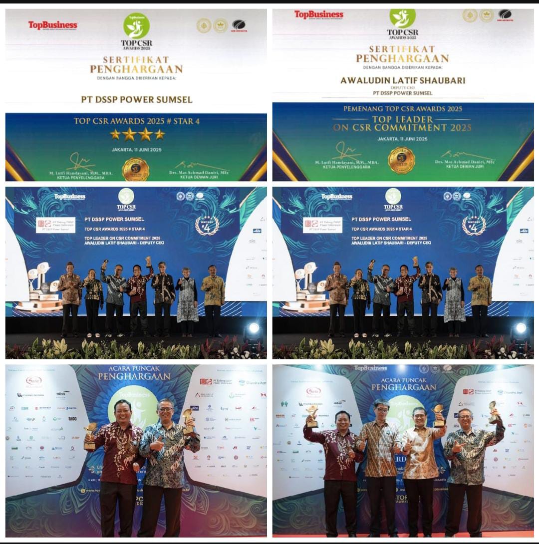 TOP CSR AWARD merupakan ajang bergengsi yang diselenggarakan oleh MSI Institute TopBusiness yang diikuti oleh ratusan perusahaan baik perusahaaan swasta maupun Perusahaan Badan Usaha Milik Negara di seluruh Indonesia dengan dewan juri yang berpengalaman dibidang masing-masing. Adapun penilaian yang dilakukan oleh dewan juri berupa data-data yang dikumpulkan serta presentasi program CSR yang dijalankan dan pertanyaan langsung secara detail kepada perusahaan PT.DSSP Power Sumsel mempresentasikan program ekonomi, Pendidikan, Kesehatan serta lingkungan yang menjadikan indicator keberhasilan CSR Perusahaan dengan judul preseantasi “ Menyelaraskan CSR Dengan Asta Cita Jalan menuju Pertumbuhan Ekonomi Inklusif”. Dari hasil pengumuman oleh team penyelenggara MSI Institute TopBusiness PT.DSSP Power Sumsel mendapat dua katagaori penghargaan sekaligus yaitu TOP LEADER ON CSR COMMITMENT 2025 yang diberikan langsung kepada pimpinan perusahaan Deputi CEO Awaludin Latif Shaubari dan TOP CSR 2025 # STARS 4 .
