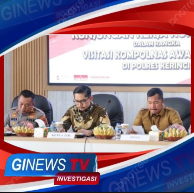 Kerinci ginewstvinvestigasiinews.com : Bupati Kerinci, Monadi, S.Sos., M.Si., mendampingi kunjungan kerja Tim Komisi Kepolisian Nasional (Kompolnas) dalam rangka Visitasi Penilaian Kompolnas Award 2025 yang berlangsung di Mapolres Kerinci, Selasa (24/6/2025).