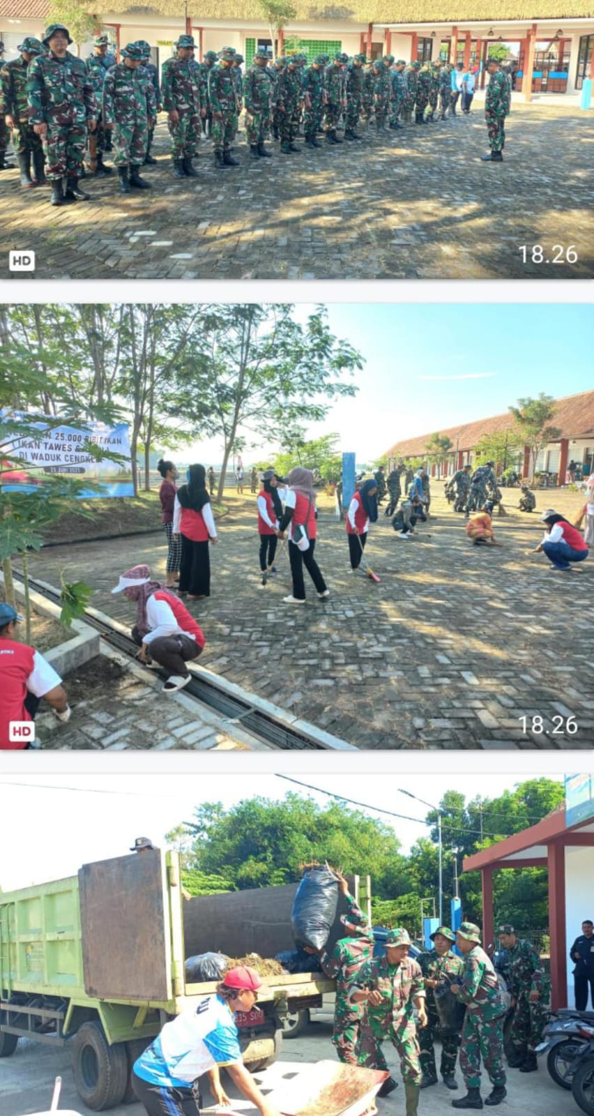 Boyolali. Prajurit TNI Kodim 0724/Boyolali menggelar kegiatan karya bakti pembersihan lingkungan hidup sekaligus tempat wisata yakni fasilitas umum taman Plaza Waduk Ceklik di Desa Ngargorejo Kecamatan Ngemplak Kabupaten Boyolali. Kamis ( 26/06/26).