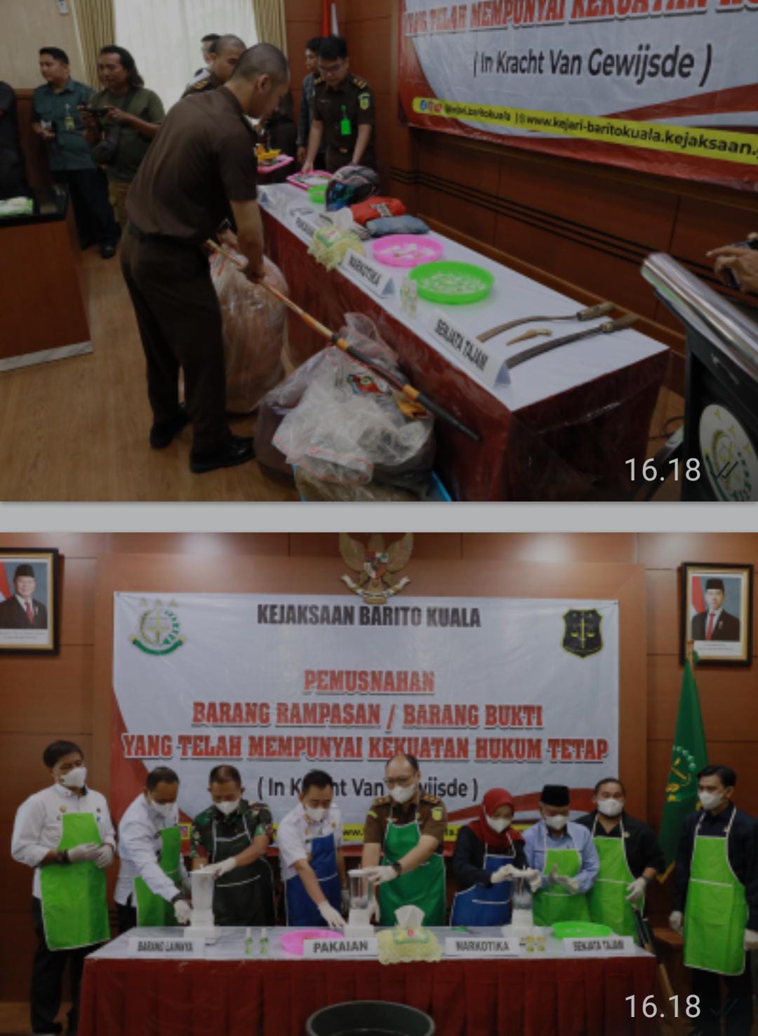 Kejaksaan Negeri (Kejari) Marabahan melaksanakan kegiatan Pemusnahan Barang Rampasan yang Telah Berkekuatan Hukum Tetap bertempat di aula dan halaman kantor Kejaksaan Negeri Marabahan Rabu (25/06)