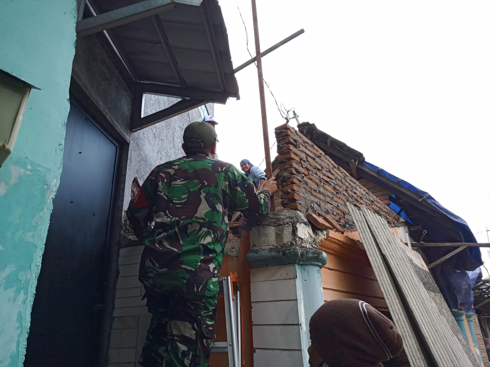 Surakarta, Babinsa Danukusuman Serda Tito Anggota Koramil 03/Serengan Kodim 0735 Surakarta melaksanakan Gotong Royong atau ikut membantu renovasi Rumah Warga binaan Bapak Wardoyo bertempat di Jogoprajan RT 02 RW 08 Kelurahan Danukusuman Kecamatan Serengan Kota Surakarta, Minggu pukul 08.30 Wib (29/06/25)