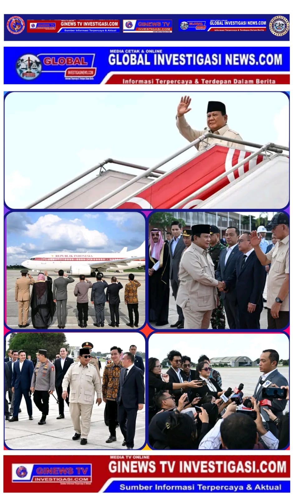 Globalinvestigasinews. Com~Presiden RI Prabowo Subianto memulai rangkaian lawatan luar negerinya dengan melakukan kunjungan kenegaraan dan kunjungan kerja ke Arab Saudi, Dari Pangkalan TNI AU Halim Perdanakusuma, Jakarta, Presiden beserta rombongan terbatas bertolak menuju Jeddah, Arab Saudi pukul 15.40 WIB.Selasa (01/07/2025).